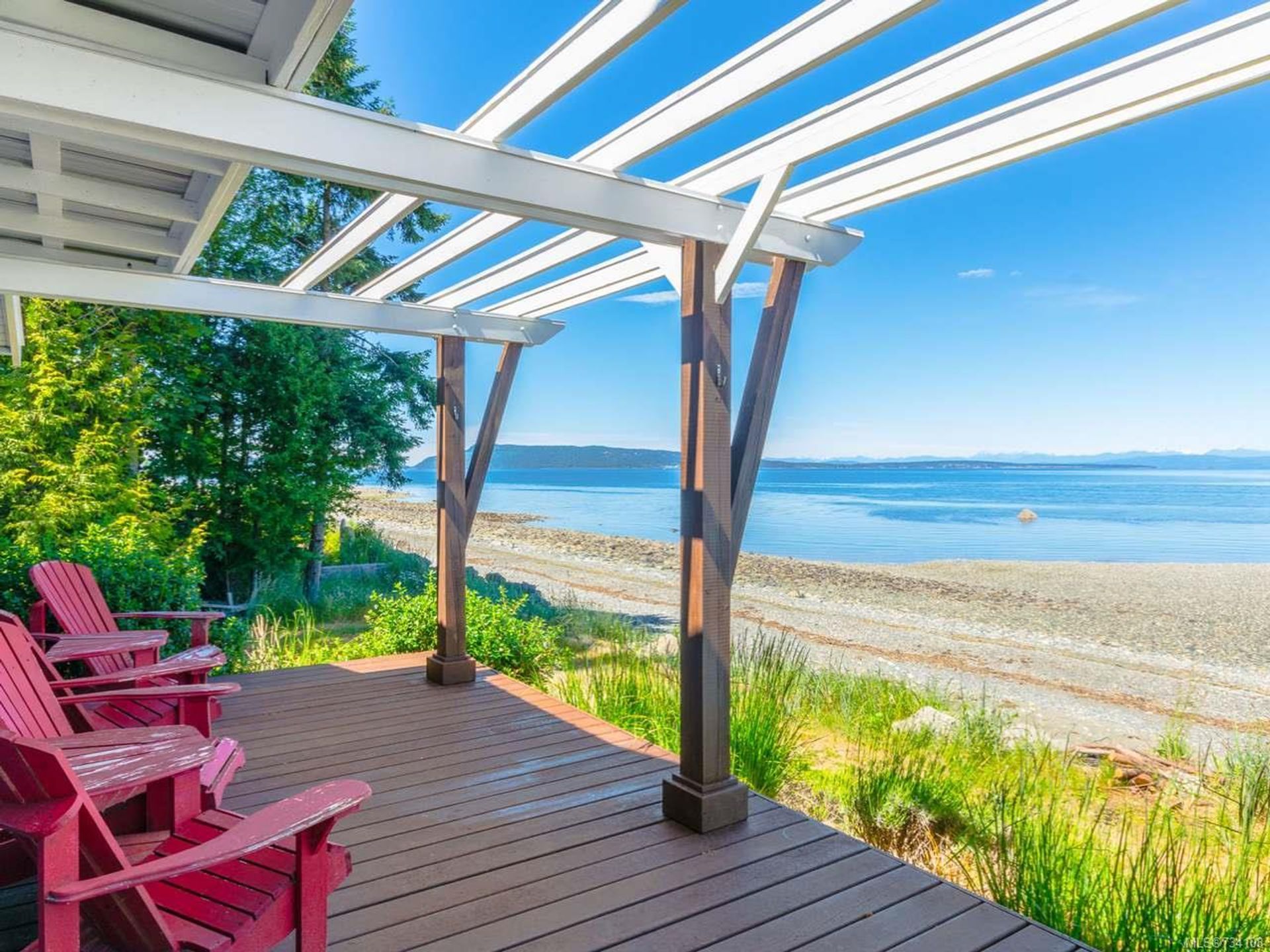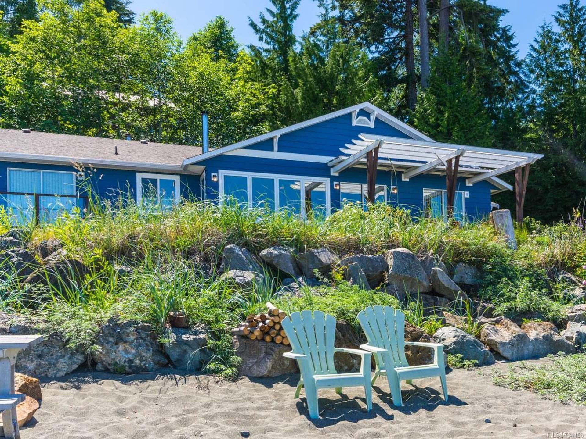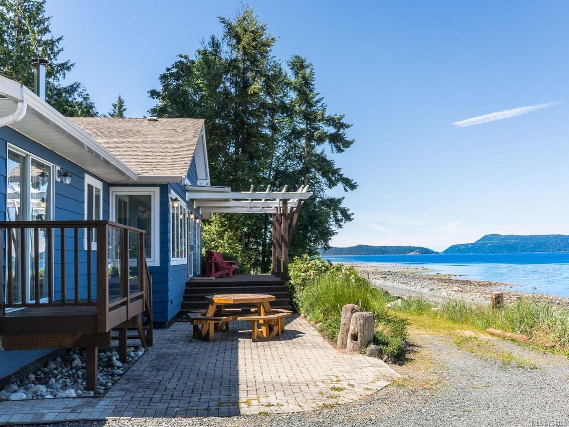 Your fabulous new beachfront life awaits you! Very private walk-on waterfront rancher with detached Studio/Guest Cottage, over 160' of waterfront, & panoramic views of the Strait of Georgia, Gulf Islands, & mainland mountains. Open plan Living/Dining Room with wood burning fireplace, hardwood flooring, french doors to cozy Den, wall-to-wall windows w/views, & door to spacious deck & patio looking onto the beach. Kitchen w/nook, oak cabinetry & a generous amount of counter space, Primary Suite with door to private Primary Bedroom's Deck, huge walk-in closet & ensuite with soaker tub. 2 additional Bedrooms, updated 5 pc Main Bath, 2 pc Powder Room, & Laundry Room with exterior access. Cozy detached Studio/Guest Cottage with ocean views, open plan Kitchen/Living/Dining Room with woodstove & door to a deck with forest & ocean views, skylighted Kitchen, 2 Beds, & skylighted 4 pc Bath. Plenty of parking, covered carport, & huge oversized single car garage that could be a workshop.