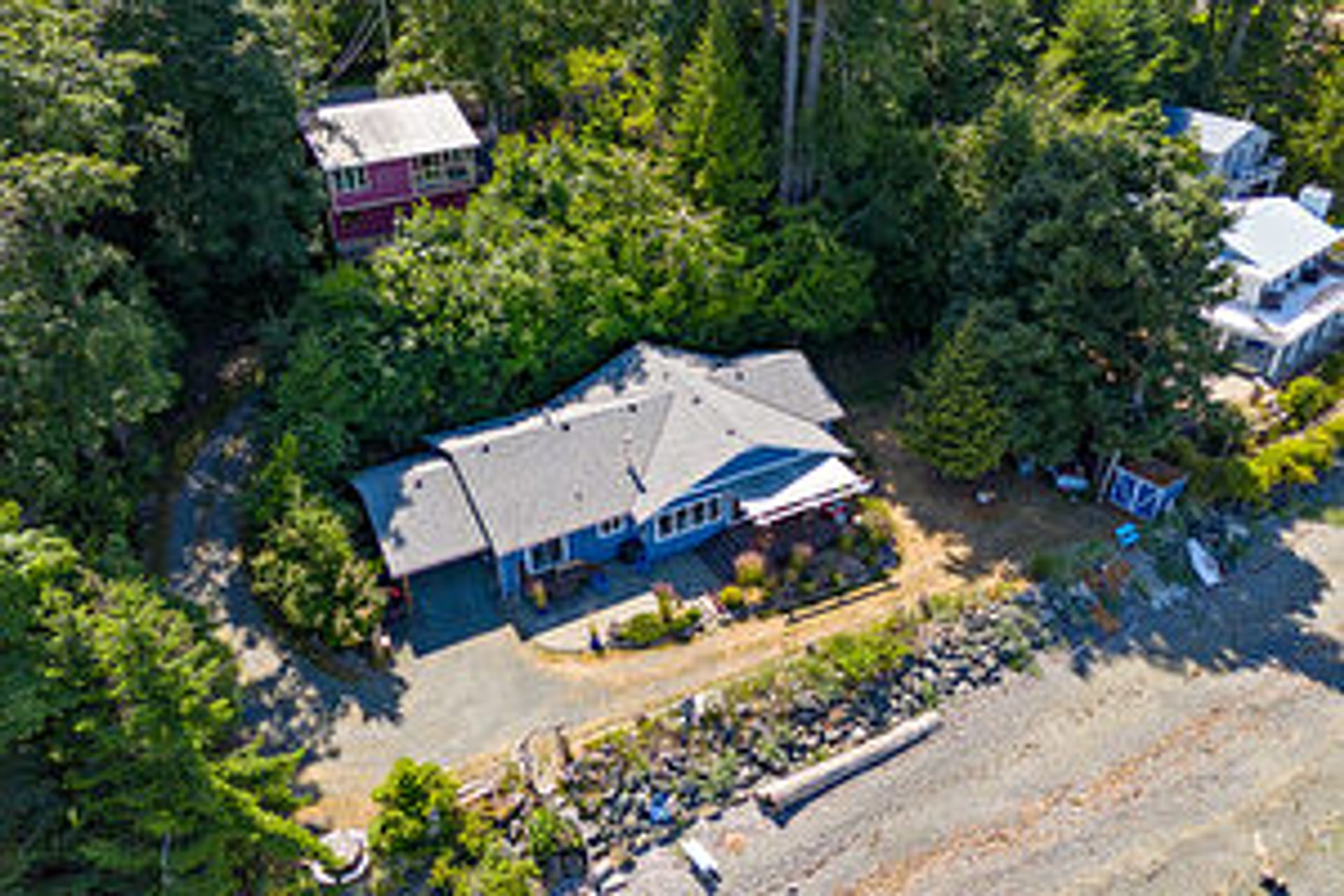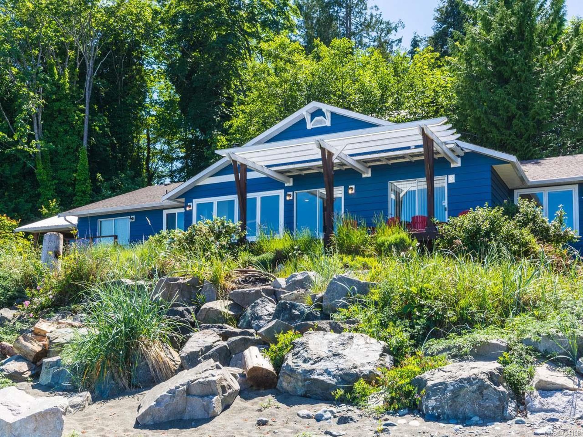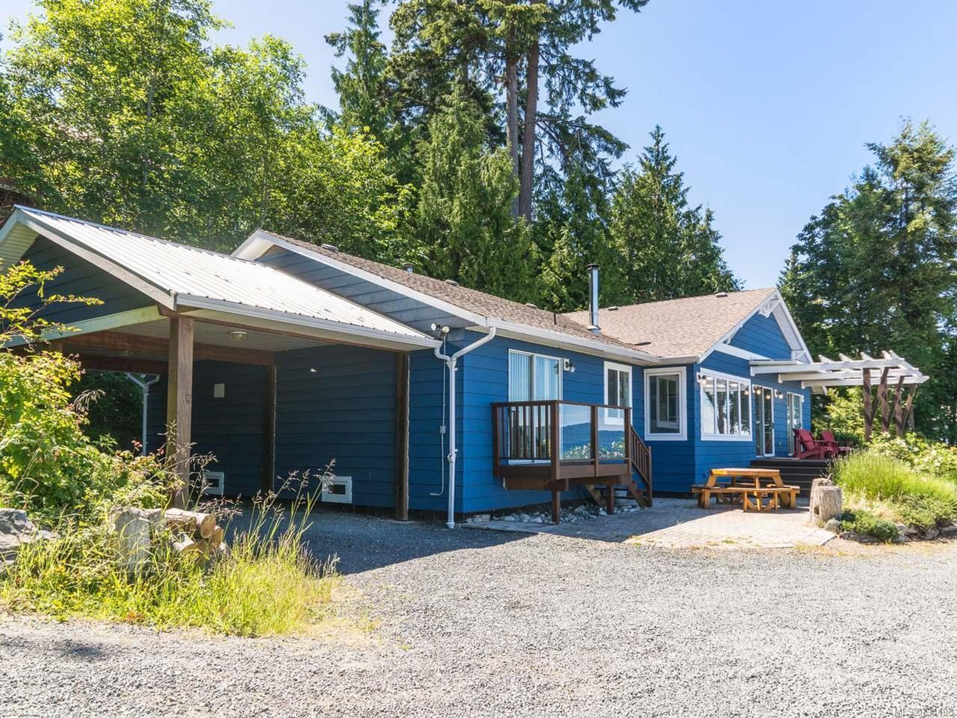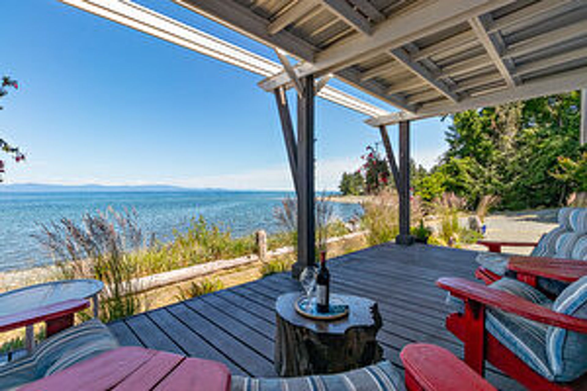 Your fabulous new beachfront life awaits you! Very private walk-on waterfront rancher with detached Studio/Guest Cottage, over 160' of waterfront, & panoramic views of the Strait of Georgia, Gulf Islands, & mainland mountains. Open plan Living/Dining Room with wood burning fireplace, hardwood flooring, french doors to cozy Den, wall-to-wall windows w/views, & door to spacious deck & patio looking onto the beach. Kitchen w/nook, oak cabinetry & a generous amount of counter space, Primary Suite with door to private Primary Bedroom's Deck, huge walk-in closet & ensuite with soaker tub. 2 additional Bedrooms, updated 5 pc Main Bath, 2 pc Powder Room, & Laundry Room with exterior access. Cozy detached Studio/Guest Cottage with ocean views, open plan Kitchen/Living/Dining Room with woodstove & door to a deck with forest & ocean views, skylighted Kitchen, 2 Beds, & skylighted 4 pc Bath. Plenty of parking, covered carport, & huge oversized single car garage that could be a workshop.